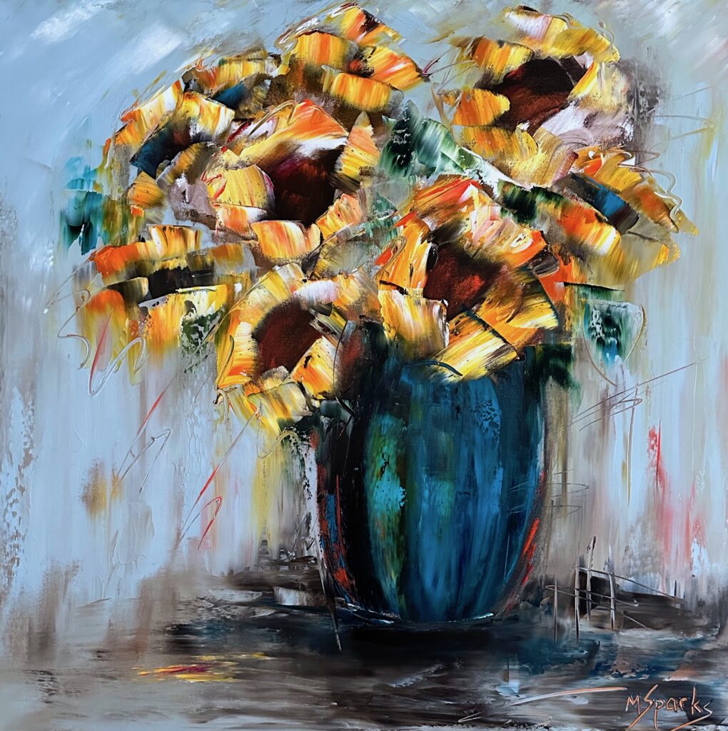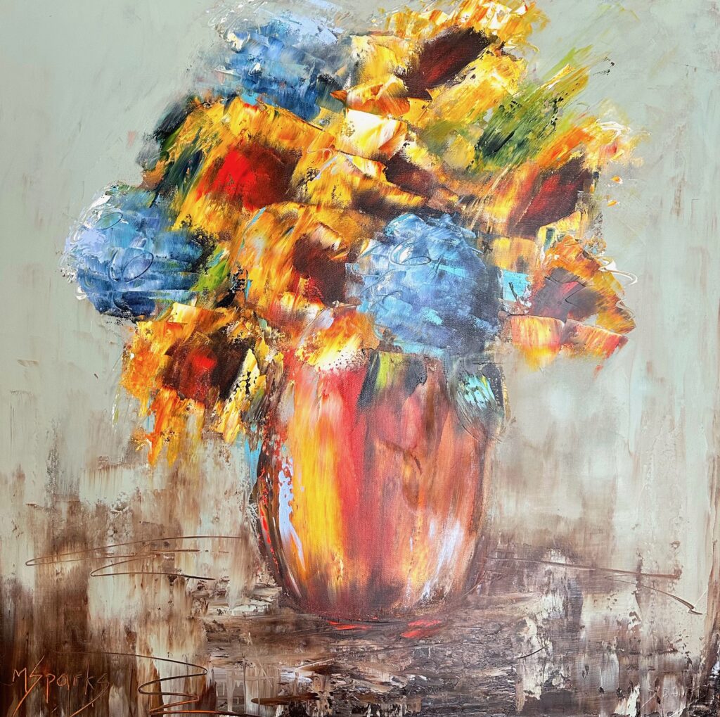 I paint “Alla Prima,” wet on wet, and exclusively with oil because I love the feel, the smell, the depth of color, the texture, and the forgiveness that oil paint provides. Vibrant colors are used to express my emotions and my point of view.